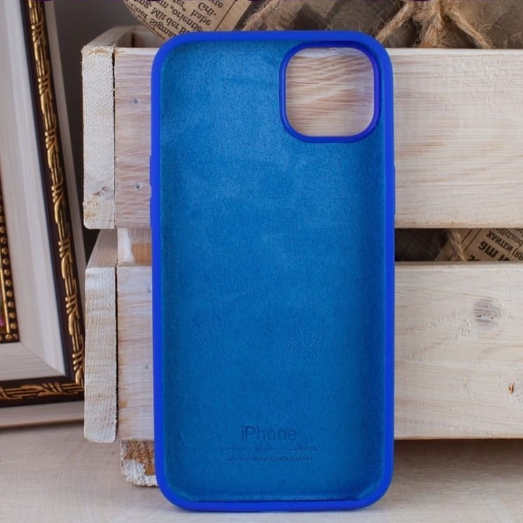 Силиконовый чехол для iPhone 15 Plus с открытой камерой индиго