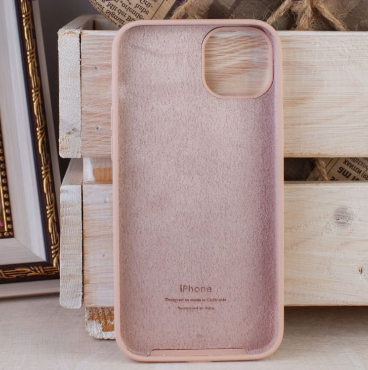 Силиконовый чехол для iPhone 15 Plus с открытой камерой пудровый