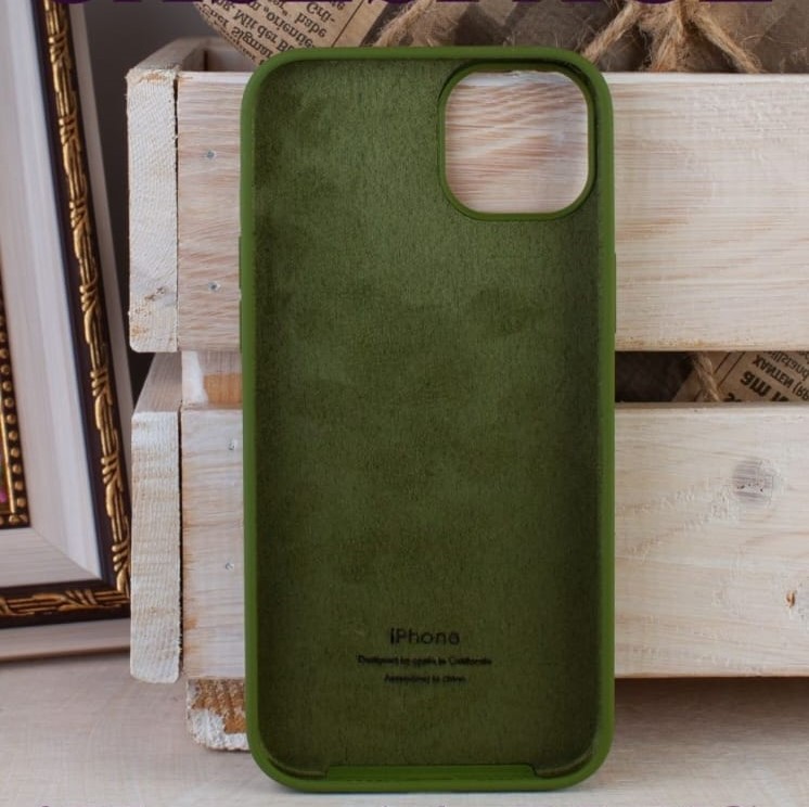 Силиконовый чехол для iPhone 15 Plus с открытой камерой хаки