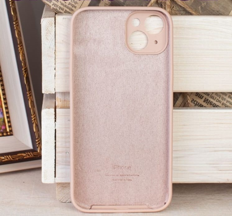 Силиконовый чехол для iPhone 15 Plus с закрытой камерой пудровый