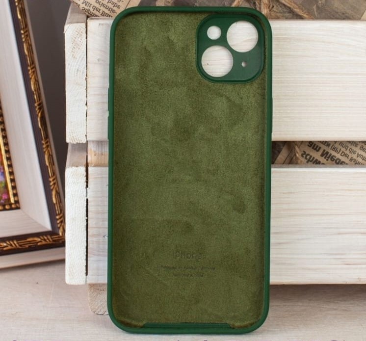 Силиконовый чехол для iPhone 15 Plus с закрытой камерой темно-зеленый