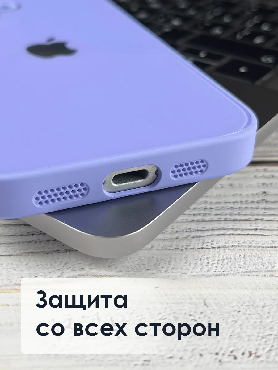 Противоударный чехол для iPhone  с задней панелью из тонкого глянцевого закаленного стекла защитит ваш смартфон от механических повреждений и станет самым любимым Вашим аксессуаром. Основа этого чехла выполнена из прочного TPU-пластика с добавлением силикона на бортиках для более комфортного надевания и изъятия. За счет стекла на задней панели, и относительно небольших габаритов и небольшого веса (всего 30 г), ваш Айфон  будет выглядеть как будто без чехла. Задняя панель не скользит, а благодаря качественным материалам смартфон очень удобно и безопасно держать в руке. Блок камеры на чехле выполнен довольно массивно, выступая за плоскость телефона на 2 мм, и хорошо защищает камеры и вспышку от внешних повреждений, а также попадания лишней влаги и пыли. Блок камеры опоясывает тонкая серебристая окантовка, красиво переливающаяся на свету. С передней стороны бортики чехла выступают на 1 мм от плоскости экрана смартфона, тем самым максимально защищают его при падениях. Чехол накладка плотно прилегает к телефону со всех сторон, не болтается, граница примыкания силиконовых бортов к дисплею не имеет лишних щелей, куда могла бы попасть влага или пыль. Кнопки громкости и кнопка включения телефона нажимаются плавно, мягко и срабатывают моментально. Все технологические вырезы этого бампера имеют 100% точность. Чехол полностью перекрывает оригинальный цвет телефона, поэтому менять внешний вид вашего устройства станет легко, просто сменив цвет стеклянного чехла. Защитный силиконовый кейс на iPhone 16 отлично защищает телефон при ударах и падениях, сохраняя корпус телефона в идеальном состоянии долгое время. Однако при сильном изгибе, как и любое другое стекло, задняя панель может треснуть. Следует помнить об этом надевая и снимая чехол с устройства.