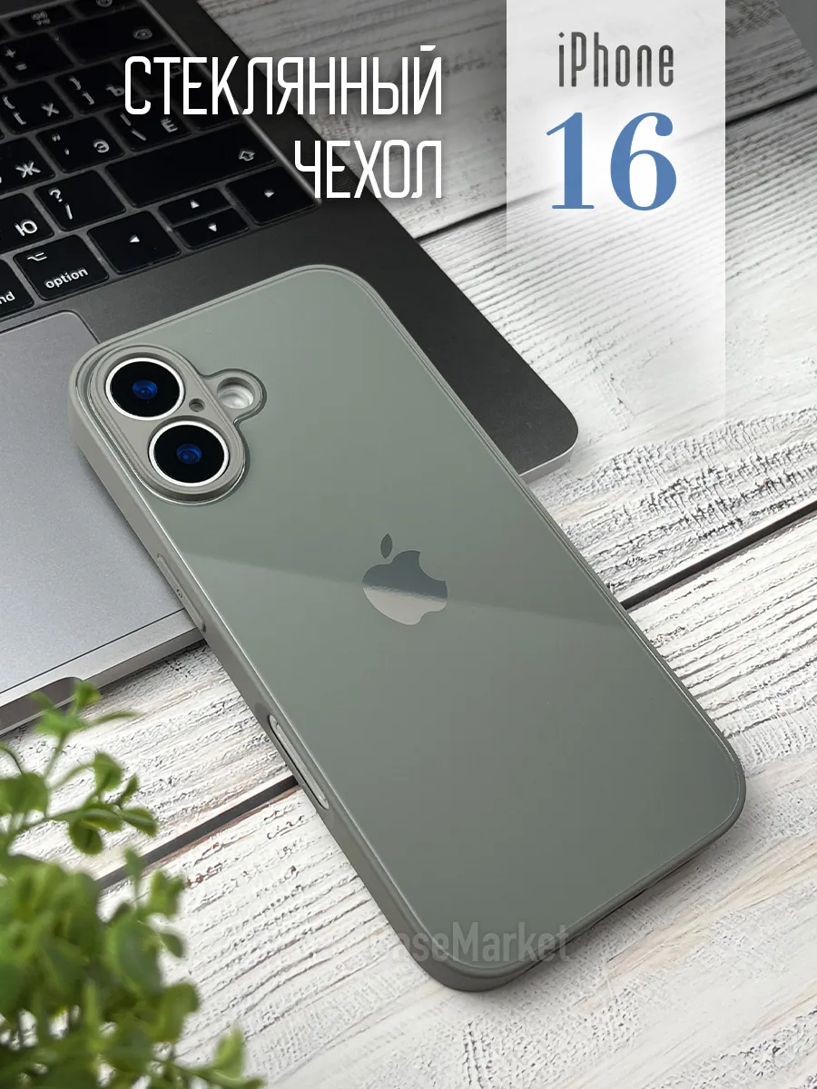 Противоударный чехол для iPhone  с задней панелью из тонкого глянцевого закаленного стекла защитит ваш смартфон от механических повреждений и станет самым любимым Вашим аксессуаром. Основа этого чехла выполнена из прочного TPU-пластика с добавлением силикона на бортиках для более комфортного надевания и изъятия. За счет стекла на задней панели, и относительно небольших габаритов и небольшого веса (всего 30 г), ваш Айфон  будет выглядеть как будто без чехла. Задняя панель не скользит, а благодаря качественным материалам смартфон очень удобно и безопасно держать в руке. Блок камеры на чехле выполнен довольно массивно, выступая за плоскость телефона на 2 мм, и хорошо защищает камеры и вспышку от внешних повреждений, а также попадания лишней влаги и пыли. Блок камеры опоясывает тонкая серебристая окантовка, красиво переливающаяся на свету. С передней стороны бортики чехла выступают на 1 мм от плоскости экрана смартфона, тем самым максимально защищают его при падениях. Чехол накладка плотно прилегает к телефону со всех сторон, не болтается, граница примыкания силиконовых бортов к дисплею не имеет лишних щелей, куда могла бы попасть влага или пыль. Кнопки громкости и кнопка включения телефона нажимаются плавно, мягко и срабатывают моментально. Все технологические вырезы этого бампера имеют 100% точность. Чехол полностью перекрывает оригинальный цвет телефона, поэтому менять внешний вид вашего устройства станет легко, просто сменив цвет стеклянного чехла. Защитный силиконовый кейс на iPhone 16 отлично защищает телефон при ударах и падениях, сохраняя корпус телефона в идеальном состоянии долгое время. Однако при сильном изгибе, как и любое другое стекло, задняя панель может треснуть. Следует помнить об этом надевая и снимая чехол с устройства.