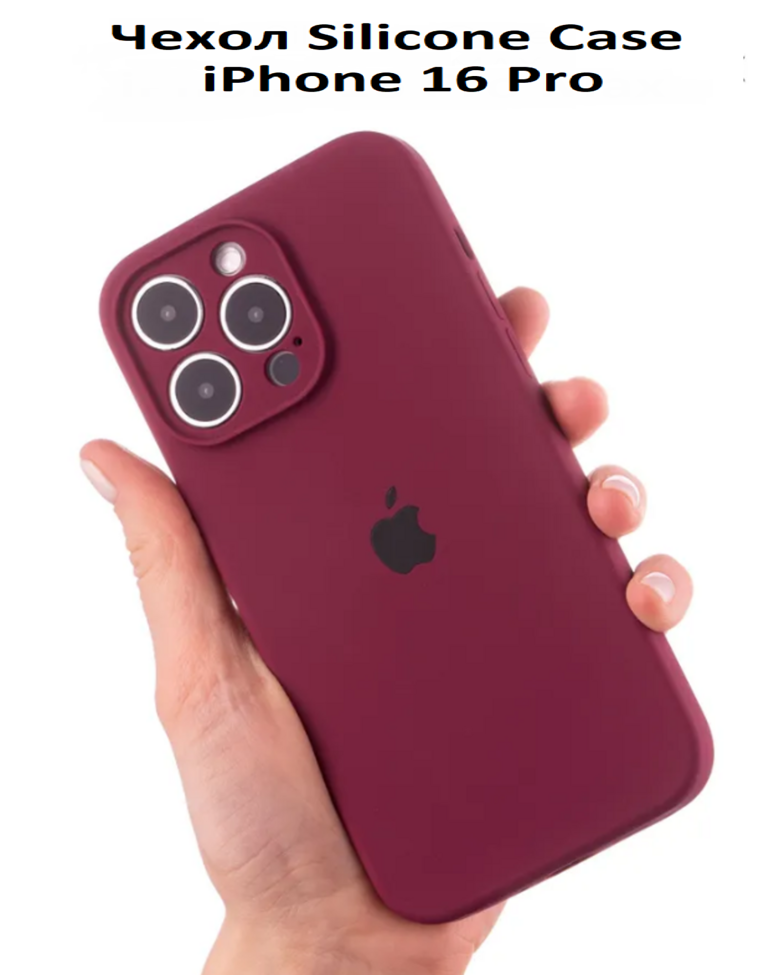 Силиконовый чехол для iPhone 16 Pro с закрытой камерой бордовый