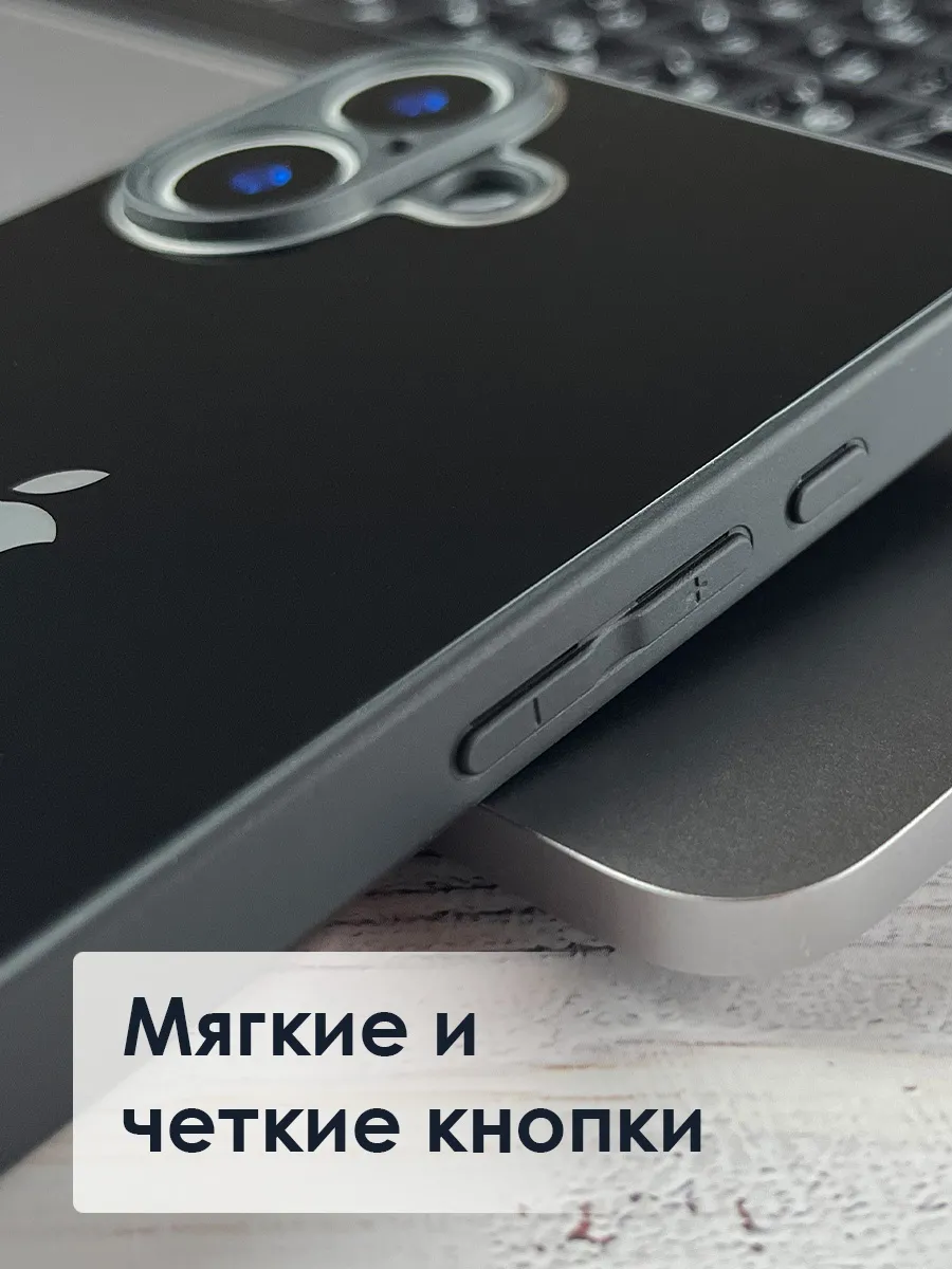 Противоударный чехол для iPhone  с задней панелью из тонкого глянцевого закаленного стекла защитит ваш смартфон от механических повреждений и станет самым любимым Вашим аксессуаром. Основа этого чехла выполнена из прочного TPU-пластика с добавлением силикона на бортиках для более комфортного надевания и изъятия. За счет стекла на задней панели, и относительно небольших габаритов и небольшого веса (всего 30 г), ваш Айфон  будет выглядеть как будто без чехла. Задняя панель не скользит, а благодаря качественным материалам смартфон очень удобно и безопасно держать в руке. Блок камеры на чехле выполнен довольно массивно, выступая за плоскость телефона на 2 мм, и хорошо защищает камеры и вспышку от внешних повреждений, а также попадания лишней влаги и пыли. Блок камеры опоясывает тонкая серебристая окантовка, красиво переливающаяся на свету. С передней стороны бортики чехла выступают на 1 мм от плоскости экрана смартфона, тем самым максимально защищают его при падениях. Чехол накладка плотно прилегает к телефону со всех сторон, не болтается, граница примыкания силиконовых бортов к дисплею не имеет лишних щелей, куда могла бы попасть влага или пыль. Кнопки громкости и кнопка включения телефона нажимаются плавно, мягко и срабатывают моментально. Все технологические вырезы этого бампера имеют 100% точность. Чехол полностью перекрывает оригинальный цвет телефона, поэтому менять внешний вид вашего устройства станет легко, просто сменив цвет стеклянного чехла. Защитный силиконовый кейс на iPhone 16 отлично защищает телефон при ударах и падениях, сохраняя корпус телефона в идеальном состоянии долгое время. Однако при сильном изгибе, как и любое другое стекло, задняя панель может треснуть. Следует помнить об этом надевая и снимая чехол с устройства.