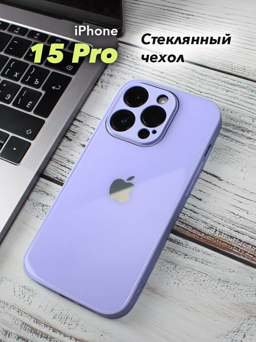 Чехлы стеклянные для iPhone 15 Pro лаванда