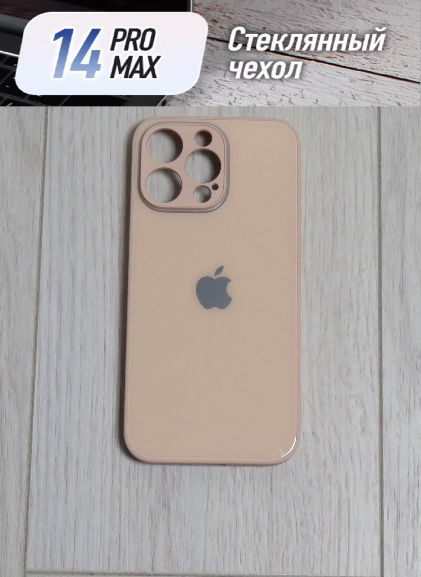 Чехлы стеклянные для iPhone 14 Pro Max пудровый