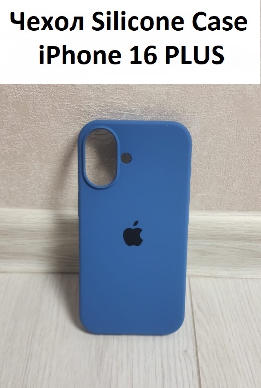 Силиконовый чехол для iPhone 16 Plus с открытой камерой деним