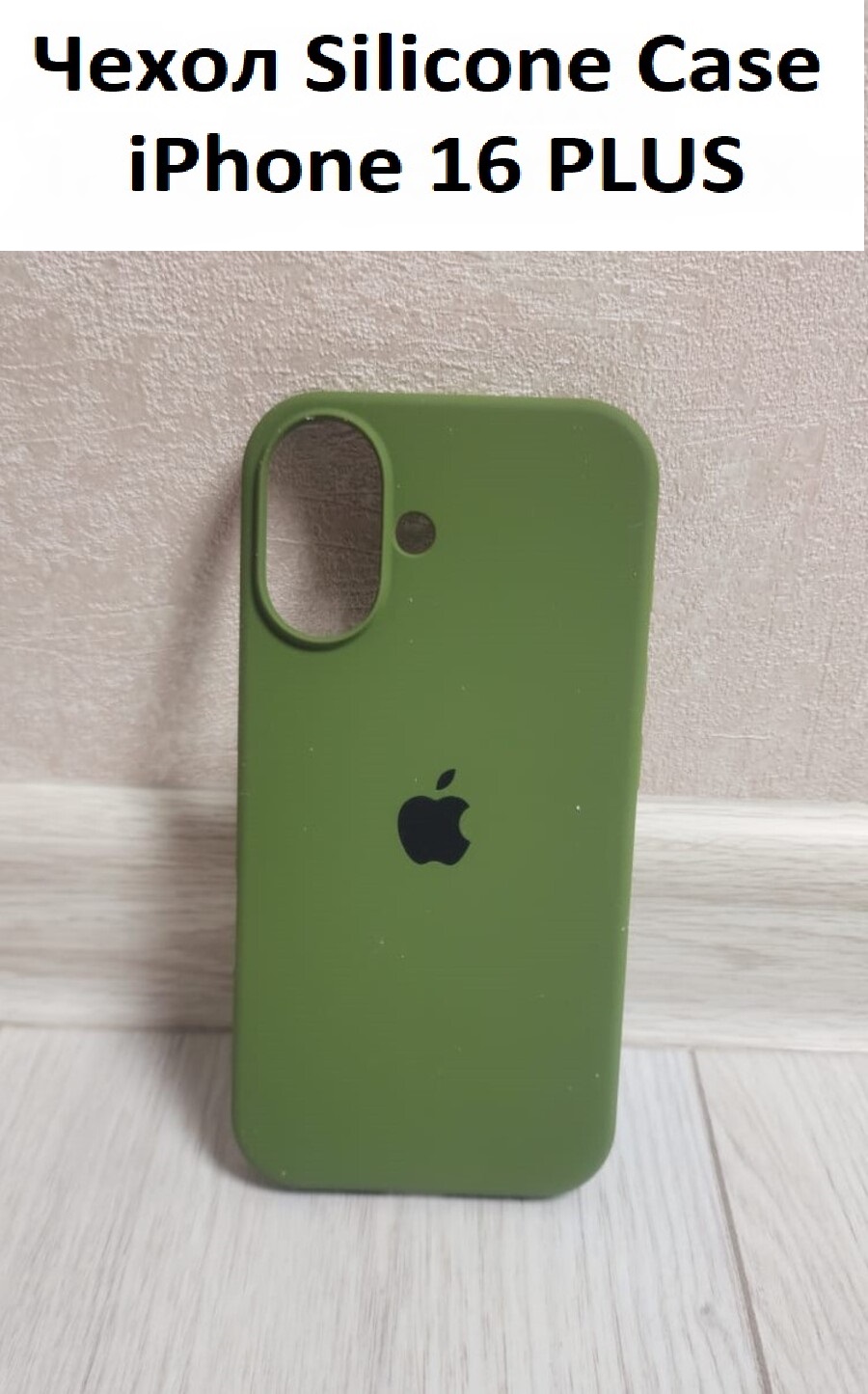 Силиконовый чехол для iPhone 16 Plus с открытой камерой хаки