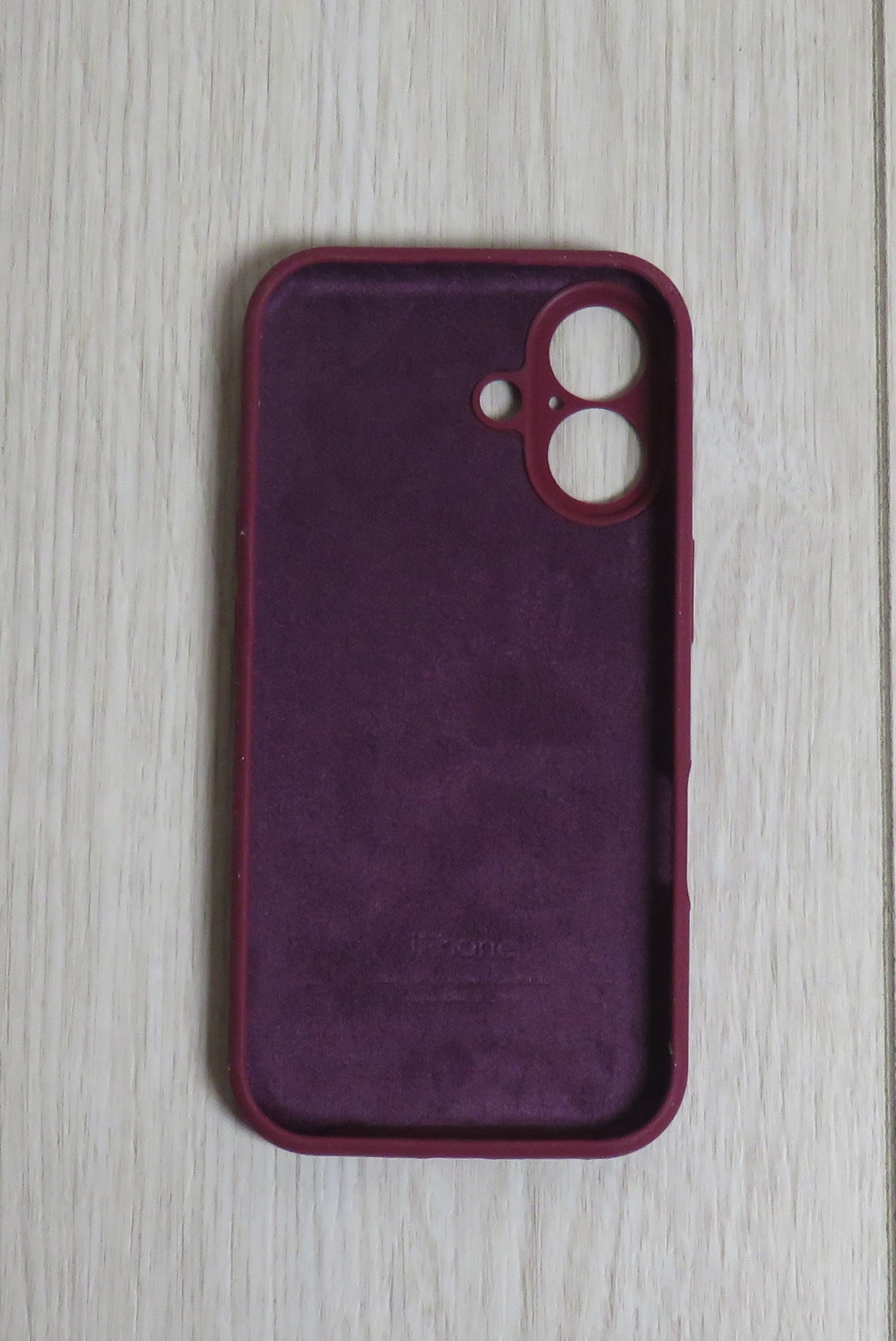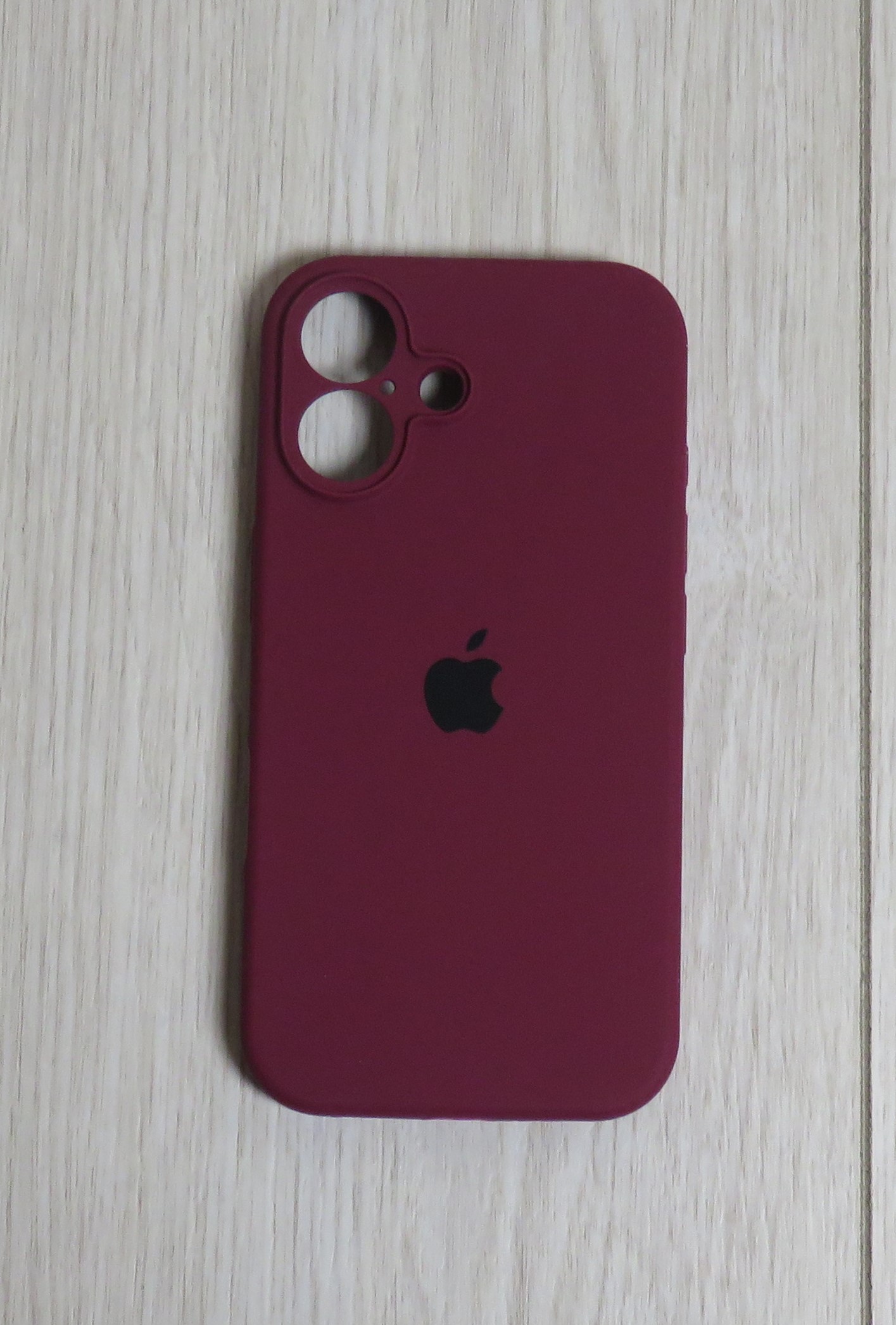 Силиконовый чехол для iPhone 16 Plus с закрытой камерой бордовый