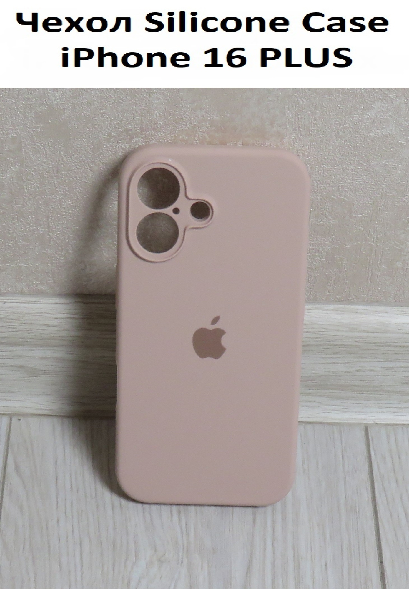 Силиконовый чехол для iPhone 16 Plus с закрытой камерой пудровый
